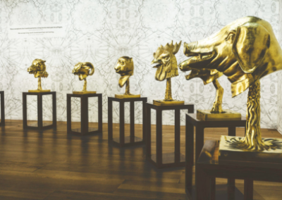 The Chinese dissident star artist Ai Weiwei has also created a piece that reconstructs, with some inventions, Castiglione’s fountain clock “Circle of animals”. The spectacular piece seeks to challenge the very idea of national heritage status for these elements of a fountain designed by an Italian for a Chinese monarch who was inspired by French opulence, which was then pillaged by the French, collected by a French citizen, and finally given to the Chinese State.
