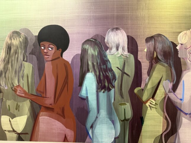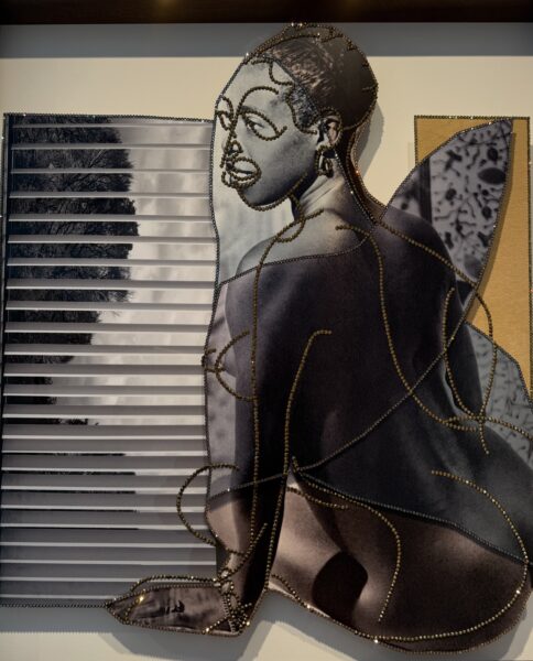 Nathalie Obadia gallery unveils at Art Basel and in her Faubourg Saint-Honoré gallery the latest works by one of the stars of American art, Mickalene Thomas (born 1971). These glamorous images of Black women, drawn from vintage erotic magazines, are in fact high-quality photographs cut and collaged onto aluminum, then embellished with shapes and patterns (priced between $50,000 and $170,000). Thomas currently has a solo show in Toulouse at Les Abattoirs Museum, following major exhibitions at the Broad in Los Angeles, the Barnes Foundation in Philadelphia, and the Hayward Gallery in London.“They are naked and proud. At the time, it was a chic way to present desire. These are women who have taken back control of themselves,” explains the artist, determined to portray her heroines outside of any victim narrative.