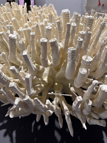 “There used to be a coral reef here that was destroyed when Miami Beach was built. The scientists are going to make sure it recolonises the site,” explains Leandro. The installation can be visited in diving gear. The other way to see Erlich’s work in Miami is, at the fair, to go to the stand of the Brazilian gallery Luciana Brito. She is showing a large coral mass in resin designed by him (priced at 120,000 dollars). On closer inspection, the branches of this big white bouquet turn out to be buildings. A poetic way of suggesting that every fragment of nature contains teeming pockets of life.