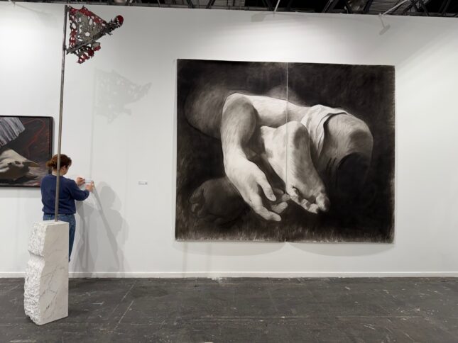 But the war inevitably made its way into the fair. The French gallerist Jérôme Poggi devoted almost his entire booth to Ukrainian artists. Particularly striking is a charcoal drawing by Nikita Kadan (born in 1982) that reproduces on a monumental scale (280 x 300 cm), in black and white, a small macabre painting by Théodore Géricault, Study of Feet and Hands, created for the famous Raft of the Medusa (for sale at 60,000 euros). Kadan is an artist who uses different media to recount the current reality of his country. “To do so, he likes to draw on French Romanticism, a period that was also witnessing the collapse of society,” comments Jérôme Poggi. His works are held, among other collections, by Tate in London and the Centre Pompidou.