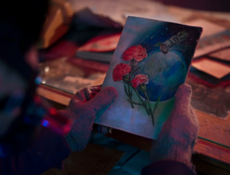 It’s a fascinating hybrid product. Hybrid because it’s a cinematic film yet one that has to be seen in a museum so visitors can enter and leave at will. Hybrid also because the temporality is disorienting.