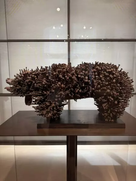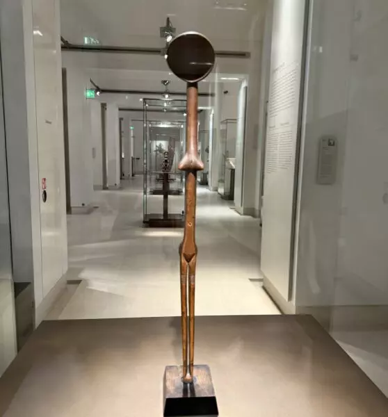 Much smaller but aesthetically just as powerful is a long Zulu spoon from South Africa shaped like a female body with pointed breasts. Once an instrument of power — used by a chief when serving himself food — it is today regarded as a sculpture that, in spirit, could evoke a Giacometti, though it predates him by a century.