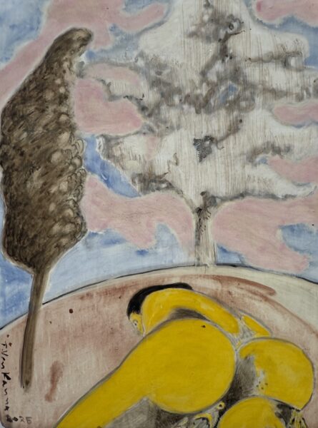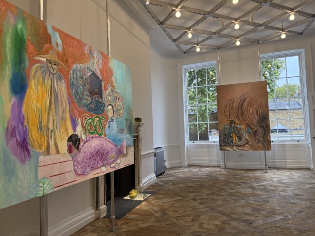More broadly, one might say that this year’s Frieze London reveals several tendencies: photographs have almost disappeared from booths, installations are less present, and figurative painting—often in bright colors—has flourished across many stands. Such is the case of Indian painter T. Venkanna, represented by Mumbai’s Maskara Gallery, who was invited to the fair at the suggestion of established artist Bharti Kher. His small tempera paintings (using egg yolk) depict powerful, fantastical women and are priced around €5,000 each.