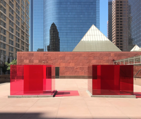 Besides the publication of the catalogue for the ICA Miami exhibition, in other news the artist has seen the recent installation of a commission for MOCA in Los Angeles, “Bill and Coo”, consisting of two red cubes in laminated glass that gleam in the Californian sun on Grand Avenue. They’re reminiscent of his row of colourful glass cubes exhibited on the Whitney Museum’s terrace during the 2017 Biennial.