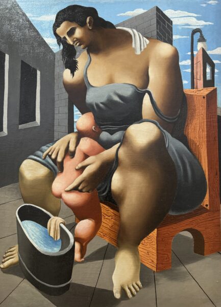 He then develops an extraordinary iconography that will sharply isolate him from the purists of abstraction. An heir to comic strips, he practices the grotesque through subjects that are often politically engaged, or through the depiction of deliberately banal themes. All of it bathed in a dominant dark pink—a tone Didier Ottinger calls “burlesque” in painting.