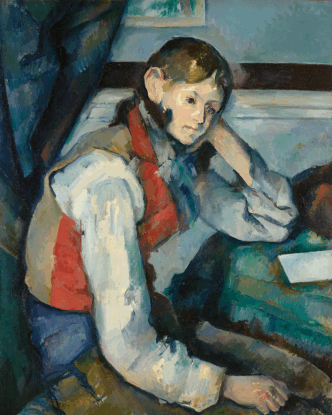 Spot the mistake… The same applies to The Boy in the Red Vest (1888–1889), in which Cézanne depicts an interminably long arm, rendered in a range of bluish tones that resemble a landscape. “A head interests me, so I make it too large,” the modern painter would explain.
