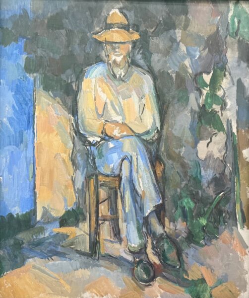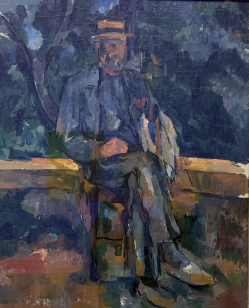 At the emotional summit of the Beyeler exhibition are three versions of the gardener Vallier, painted in 1906. The artist is nearing death. The shadows of the tree dance across the old peasant’s body in an Emotional suminterplay of yellows, blues, whites, greens and greys, articulated in three different propositions. Sublime.