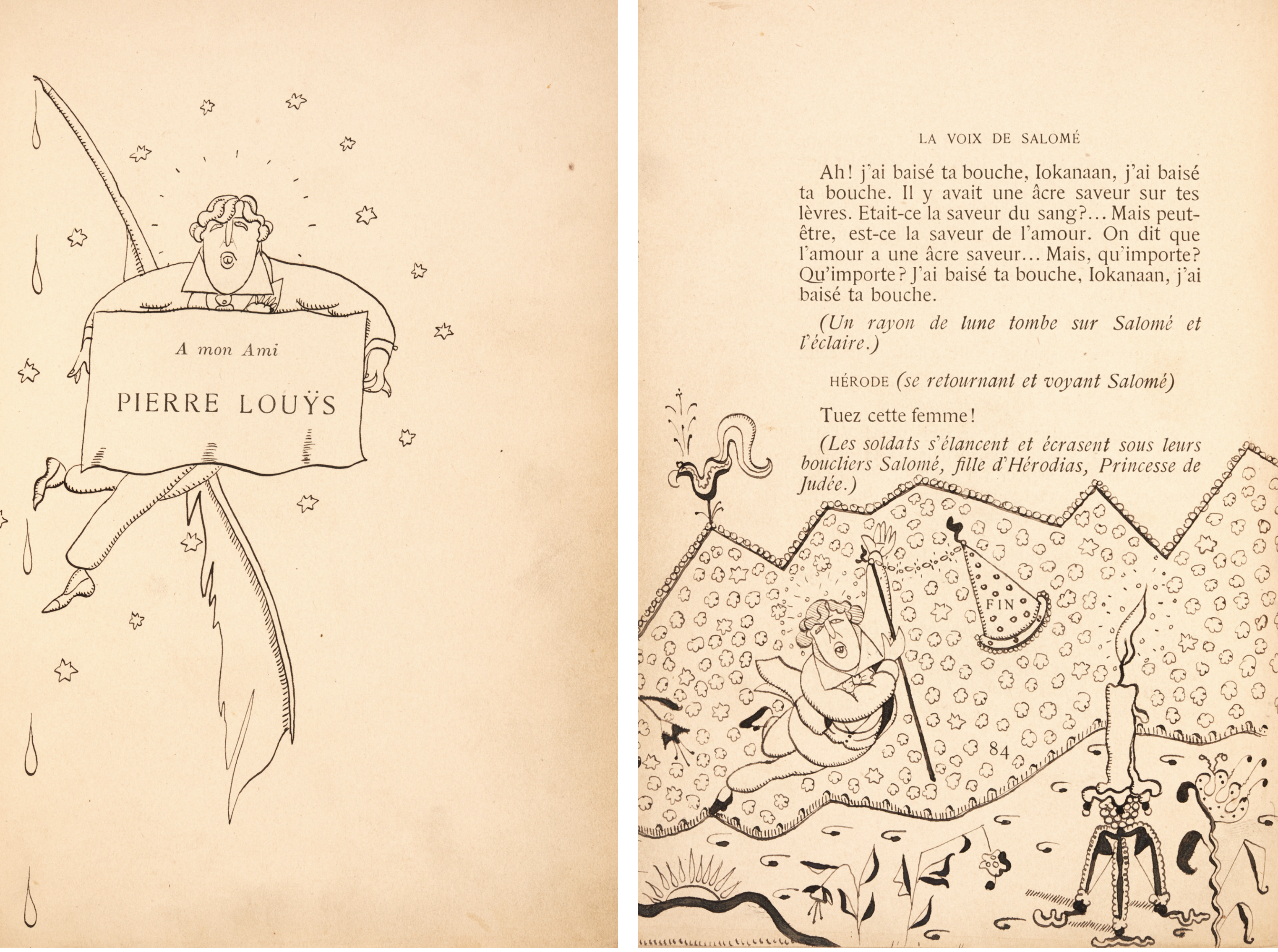 The 1893 volume possessed all the qualities that stir bibliophiles, forever in search of what renders a printed object unique. In this case, its value lay first in its provenance: it had belonged to Wilde himself, who gave and inscribed it to his lover, the literary journalist Robert Ross. It was also adorned with a substantial group of original drawings by the British caricaturist and dandy Max Beerbohm (1872–1956).